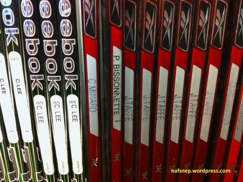 Turn around from the sticks and they have goaltender equipment and helmets.