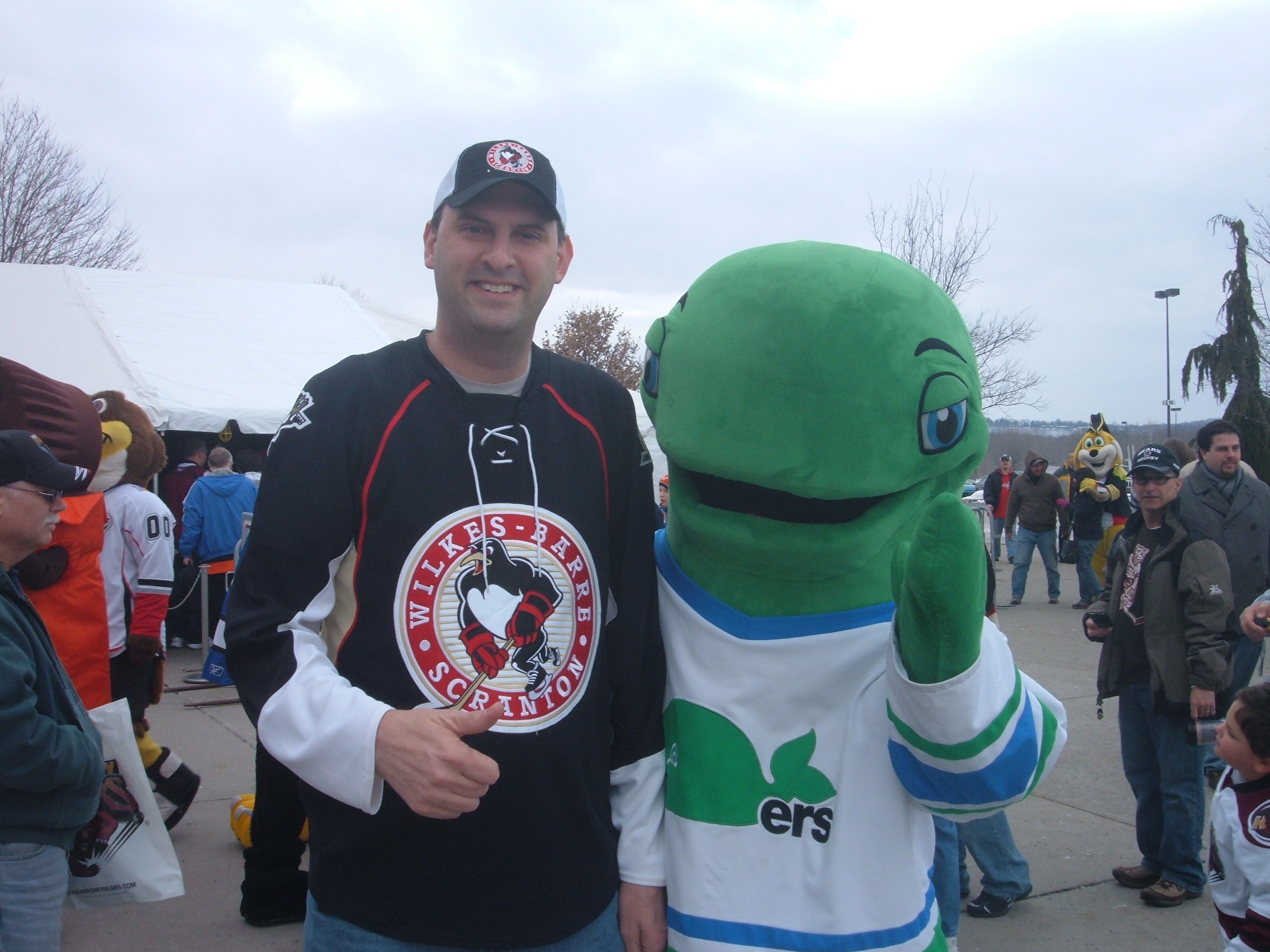 It started out Sunday afternoon at the Skills Competition. Some teams send their mascots. I love mascots. Here are a few I was lucky to get pictures with.