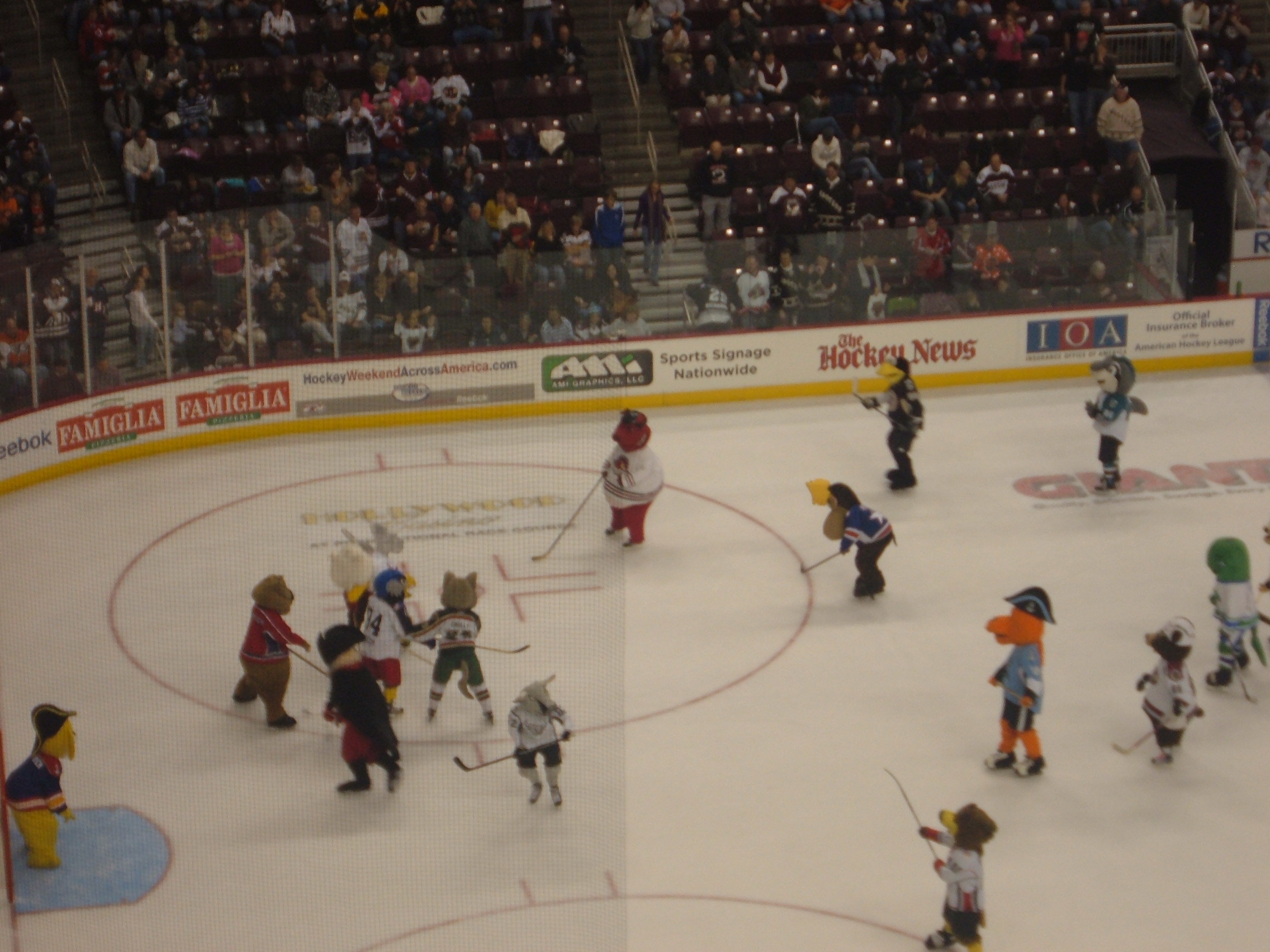 It’s T-Bone from the San Antonio Rampage! Standing on a table! Tux is still the best mascot!