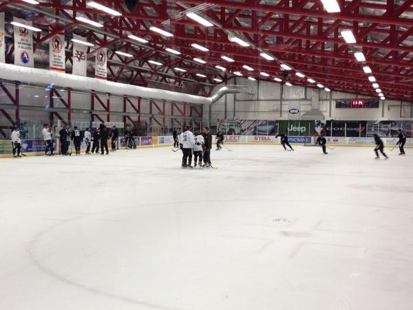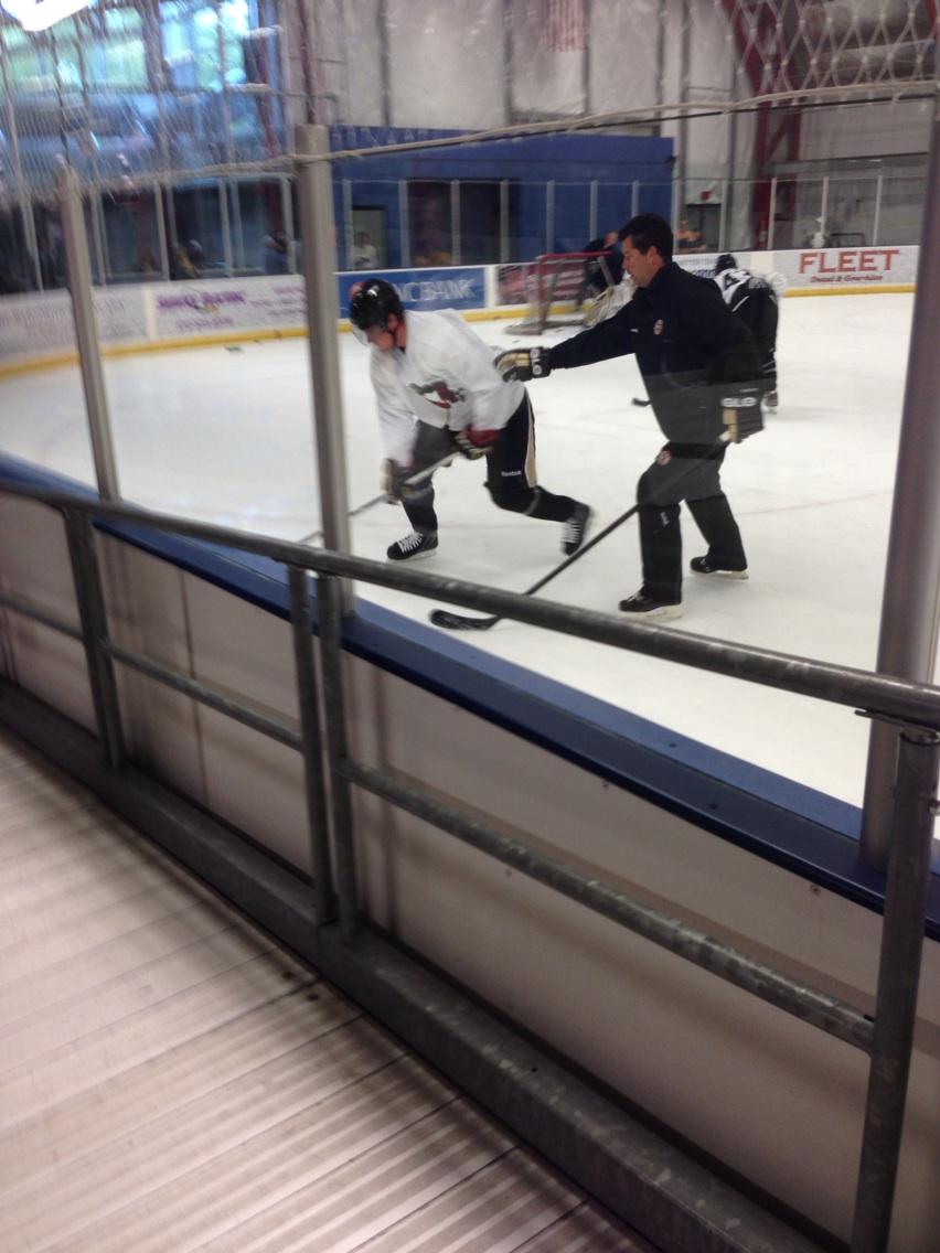 This is Keven Veilleux working with Bill Guerin. From my untrained eyes, Keven did not appear to be showing any ill effects after last years season ending knee injury.