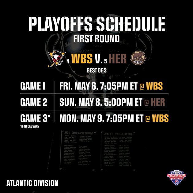 Your formats are as follows, the first round is a best of three. The division semis and finals are best of five. The Conference Finals and Calder Cup Finals are best of seven. Here’s a handy graphic from the folks at the AHL.com: